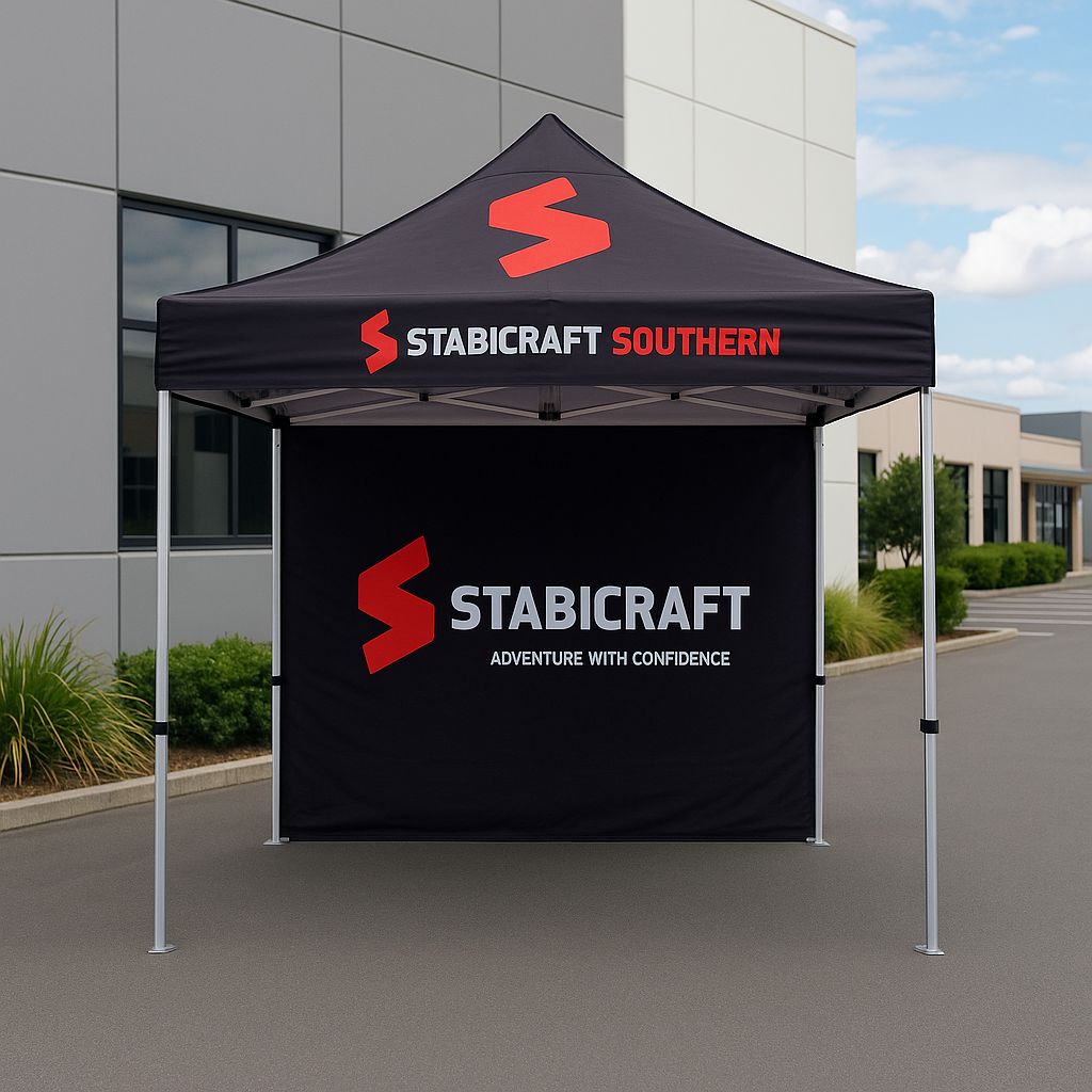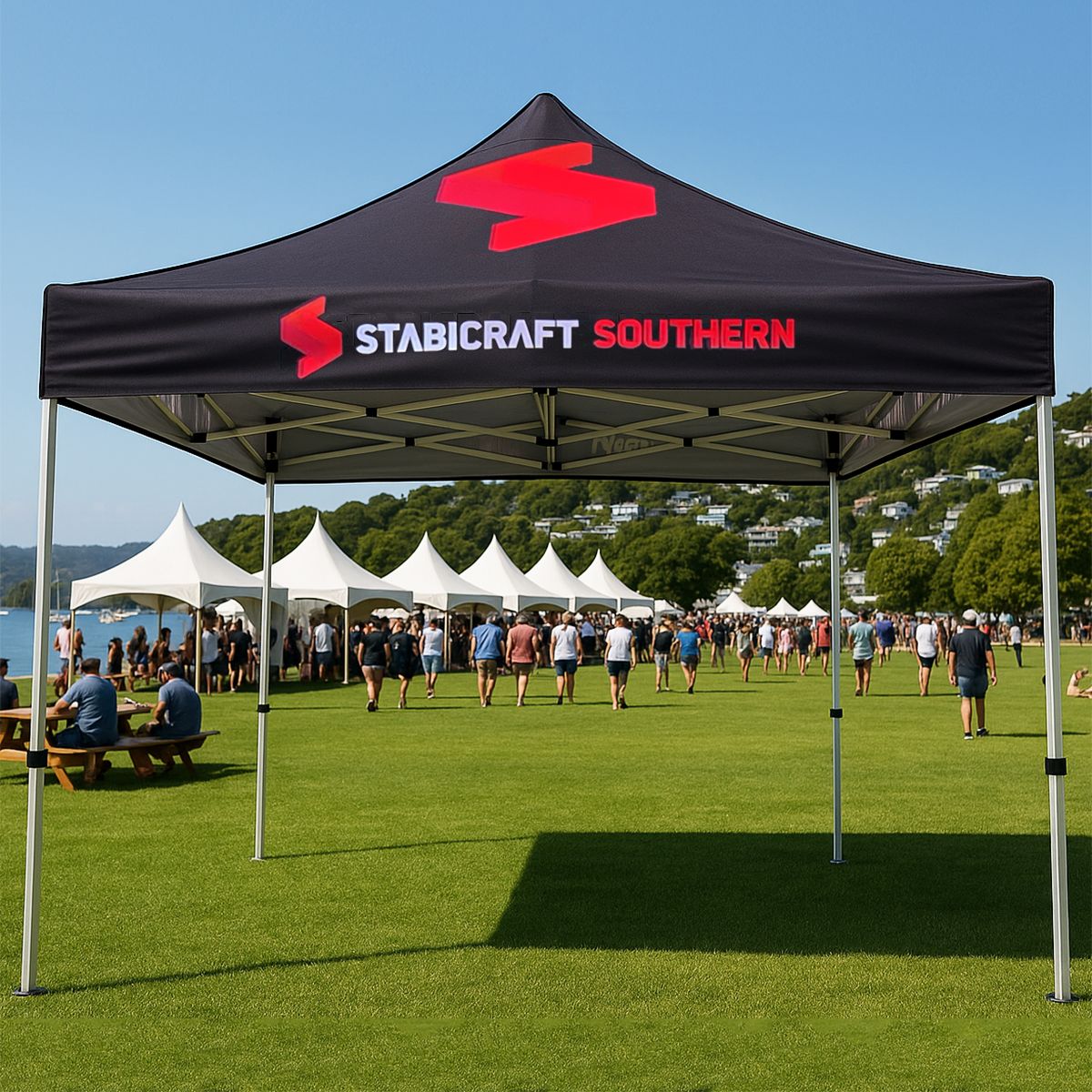 Our 3x3m premium aluminium custom gazebos are perfect for commercial use, combining strength and style. Each printed gazebo is designed with a 29kg heavy-duty aluminium frame and is customizable with full-colour dye sublimation, ensuring your branded gazebo stands out at any event.