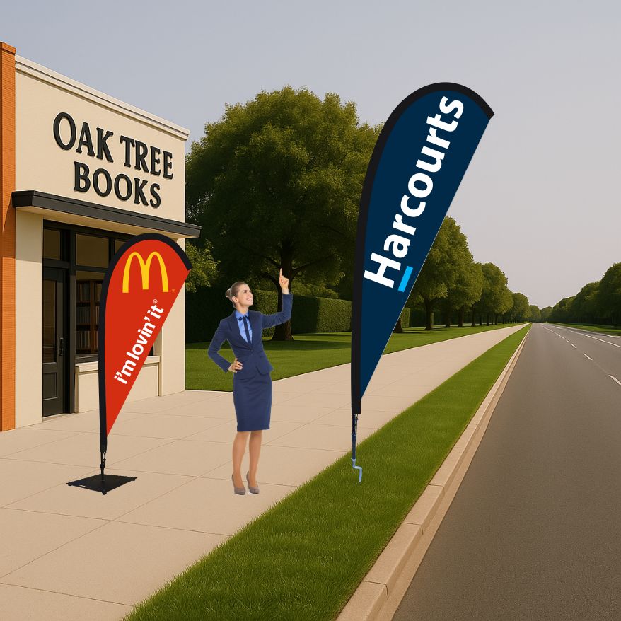 - Teardrop Flags – Distinctive curved shape for high-impact branding.